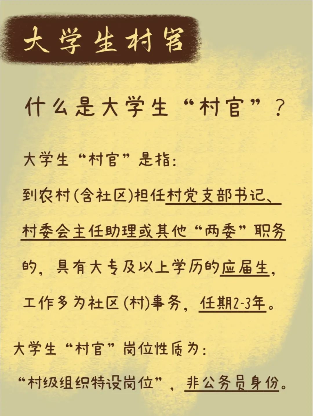 各项政策以各地大学生村官网为准,未尽事宜请登录村官报名-村官考试-大学生村官网(yjbys.com)查询。